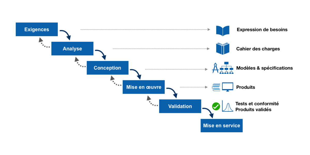 Après avoir vu le modèle Waterfall, qui est linéaire et séquentiel, le cycle en V est apparu comme une évolution naturelle pour mieux gérer la qualité.
