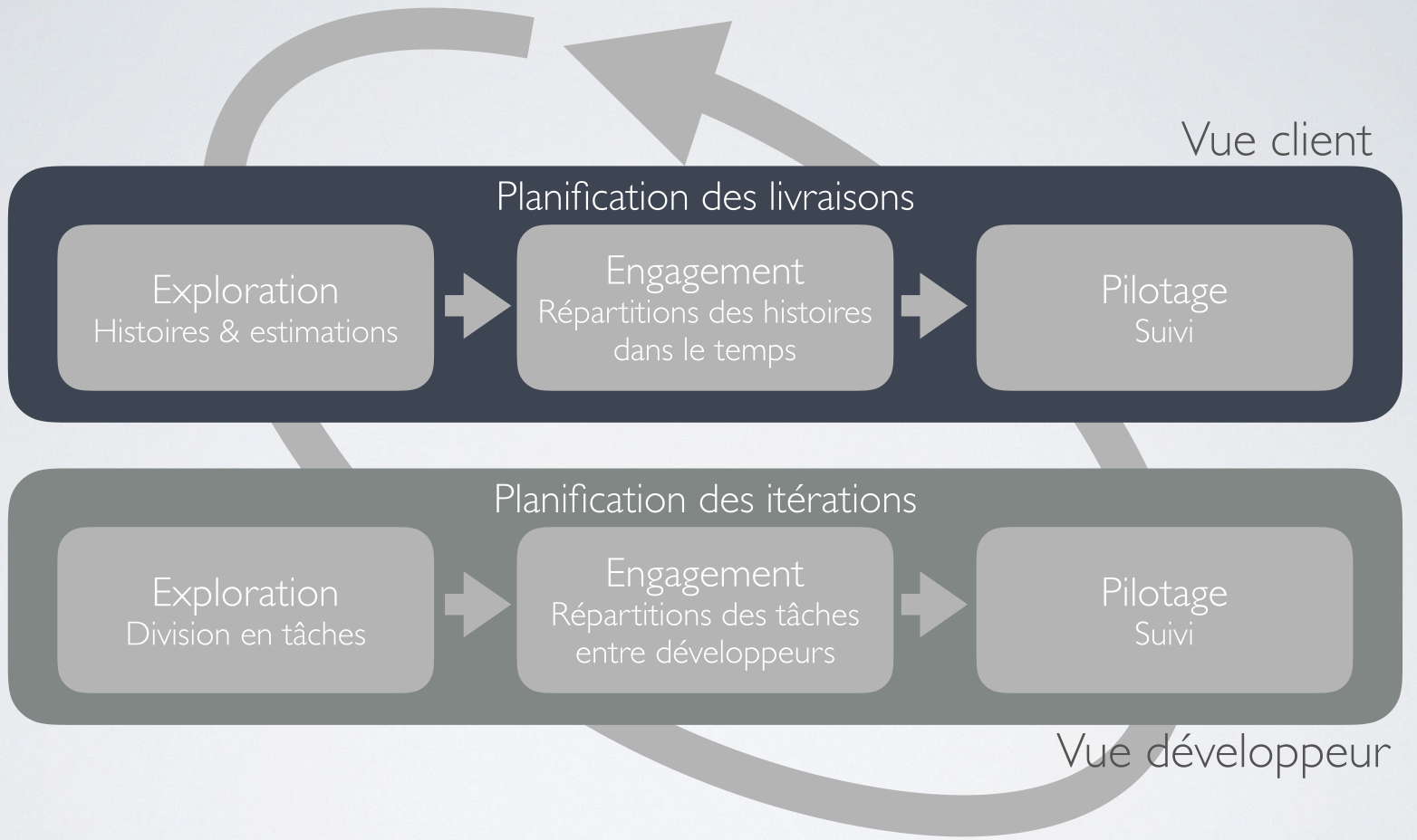 Parmi les méthodes agiles, XP est l’une des plus connues pour sa focalisation sur le code. XP cherche l’agilité à trois niveaux : le code lui-même, avec des pratiques comme le refactoring et les tests automatisés ; l’équipe de développement, avec du pair programming ou un rythme de travail durable ; et la gestion de projet, avec des itérations courtes et un dialogue permanent avec le client. XP a aussi une dimension humaniste : valoriser la communication, la confiance et le respect entre développeurs.