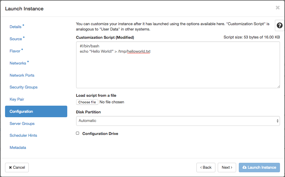 Métadonnées fournies par OpenStack